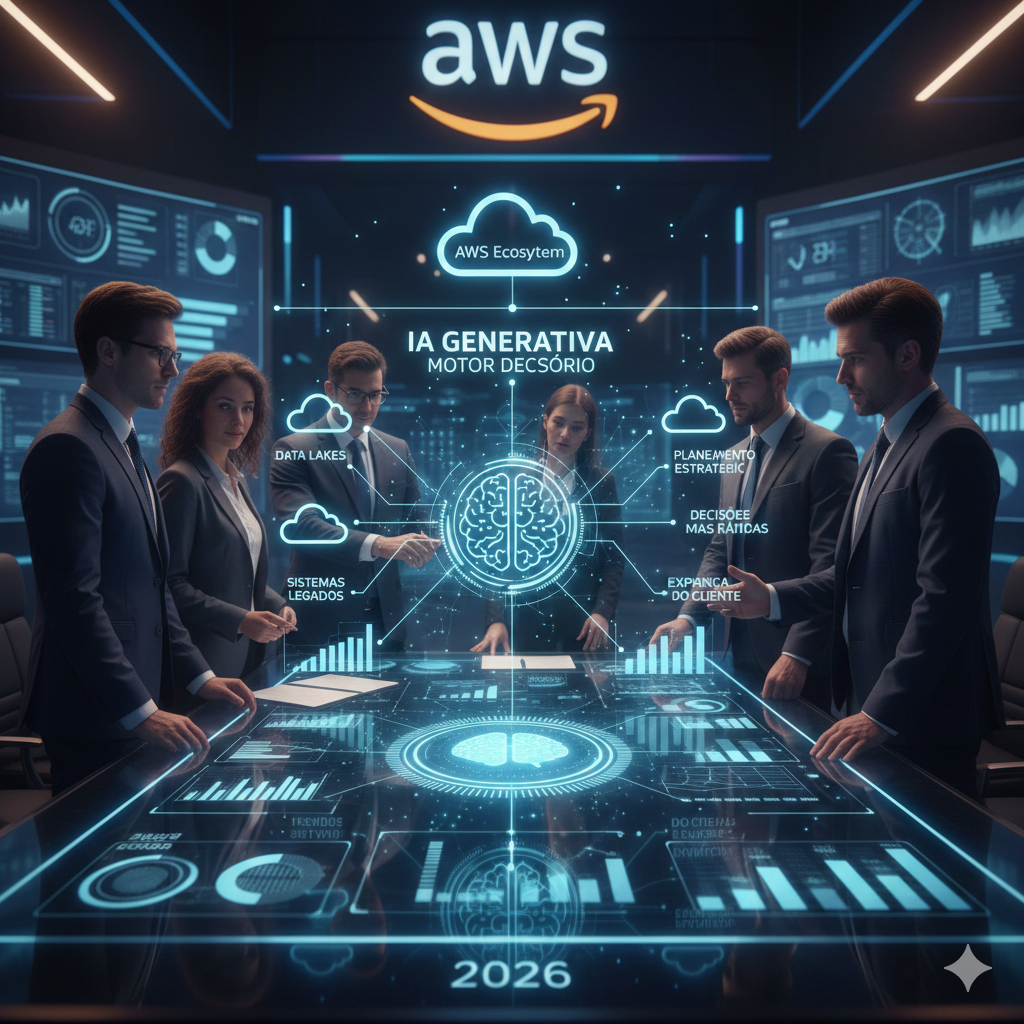 Em janeiro de 2026, a IA Generativa já não é mais uma aposta experimental. Para empresas orientadas por dados, ela se consolidou como ferramenta estratégica para acelerar decisões, reduzir ineficiências e ampliar vantagem competitiva. Quando integrada ao ecossistema AWS, essa tecnologia ganha escala, governança e impacto real nos resultados — exatamente o que líderes de TI e executivos de negócios buscam neste momento de maturidade digital.
