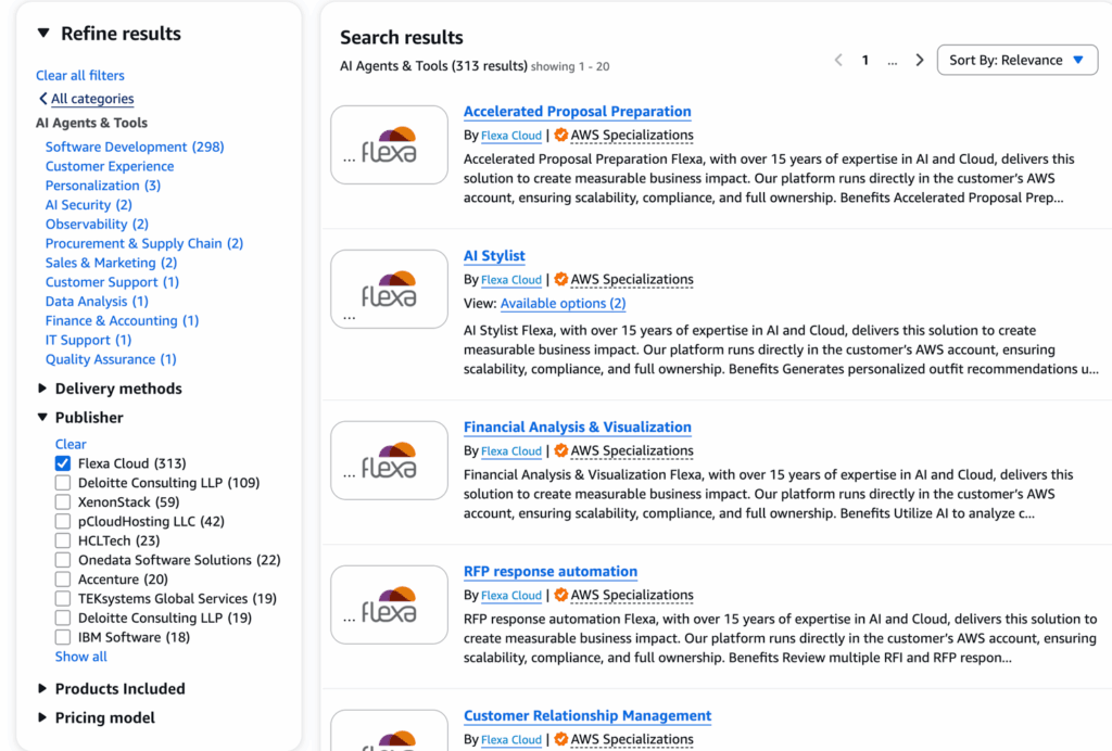 A Flexa inicia 2026 como o parceiro da AWS com o maior portfólio de soluções de IA do mundo no AWS Marketplace: 309 ofertas, quase três vezes mais que o segundo maior provedor global Flexa Cloud