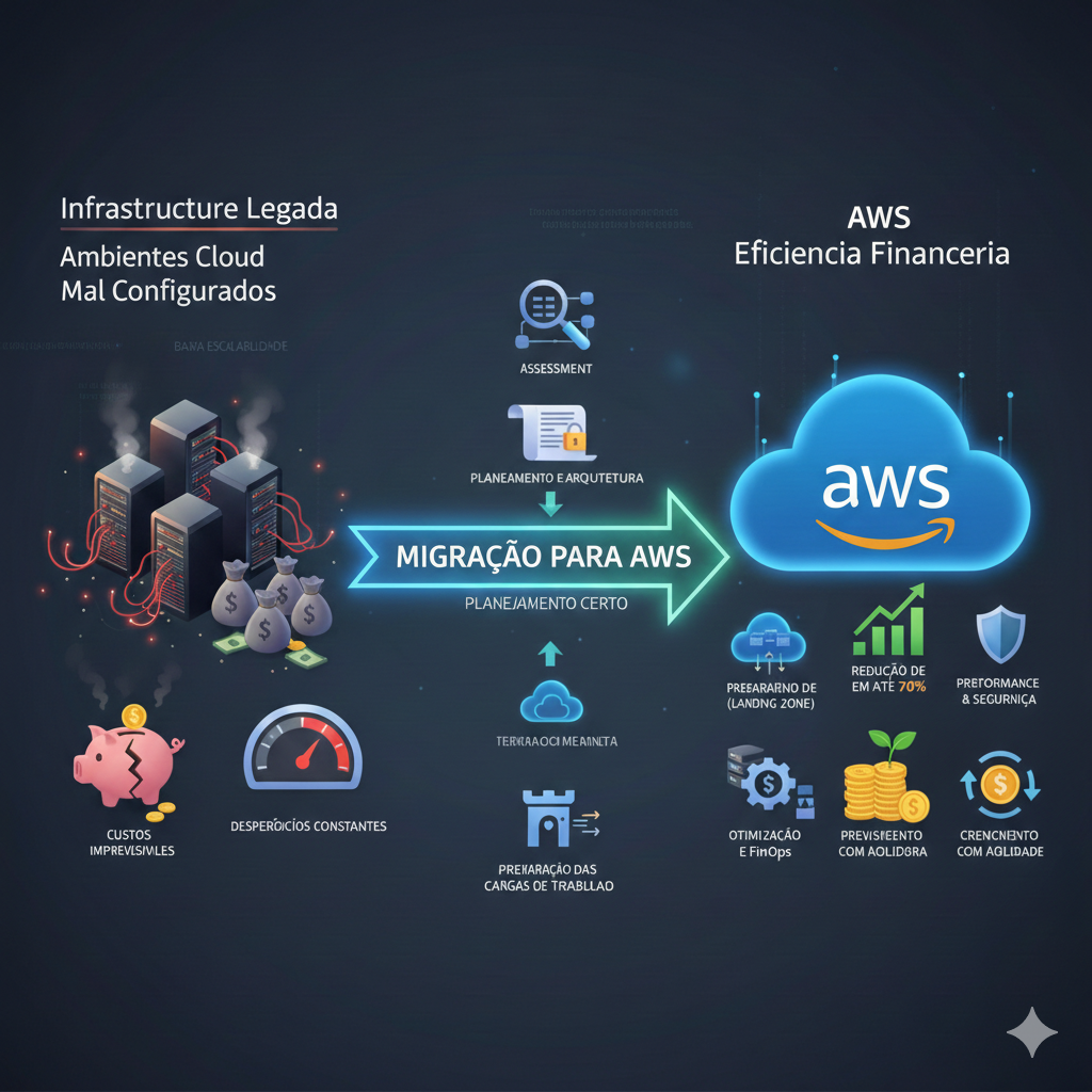 Migrar para a AWS deixou de ser apenas uma decisão tecnológica — tornou-se uma estratégia de eficiência financeira. Empresas que operam com infraestrutura legada ou ambientes cloud mal configurados convivem com custos imprevisíveis, baixa escalabilidade e desperdícios constantes. A boa notícia é que, com o planejamento certo, a migração para AWS pode reduzir despesas em até 70%, sem comprometer performance ou segurança.